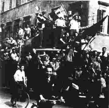 [At right, "Esultanza popolare per la caduta di Mussolini (26 luglio 1943)"/ “Popular exultation over the fall of Mussolini”]