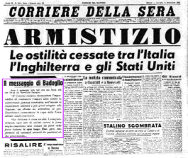 [To the right,“Armistice! Hostility ceases between Italy, England and the United States”, Corriere delle sera, 1944]