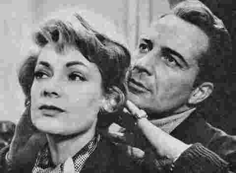 That evening the man from the boat asks her to dinner and takes her to a seedy place where she is leered at by the sleazy clientele. They are joined by a most unwelcome dinner companion, a corpulent menacing character (Gert Frobe) who guzzles plate after plate of food so greedily that he has a choking episode that disgusts Francesca, who leaves. She is standing beneath a lamppost looking up at the window of Fabio's office when he leaves the building. Crossing the dark square he does not see her until, pausing to light a cigarette, he wheels around and says,"You!". She wonders where they can go and again asks about his place, but he reminds her that it is disgusting and asks if she would care to go for a coffee. (Obviously he is a lowly paid curator or perhaps, as in "Summertime", he has a wife he hasn't mentioned.