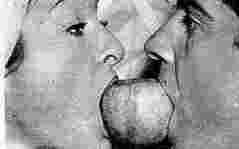 Unfortunately, we cannot even begin to explain the "Suck On the Apple From Both Sides" Kiss, except to say that we're sure it involves some sort of "Adam and Eve"/"Fall from Grace,"/"Woman is the root of all evil" symbolism that we're not even remotely prepared to discuss in this forum, thank you very much.